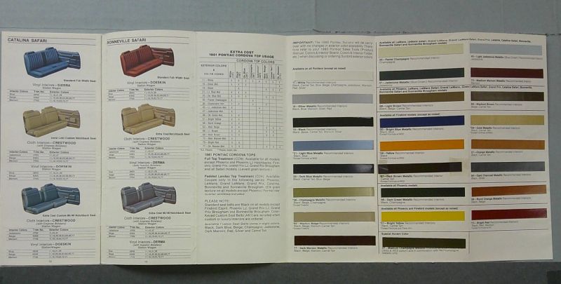This is an original Pontiac sales catalog. It features exterior colors and interiors for the 1981 Pontiac lineup.
