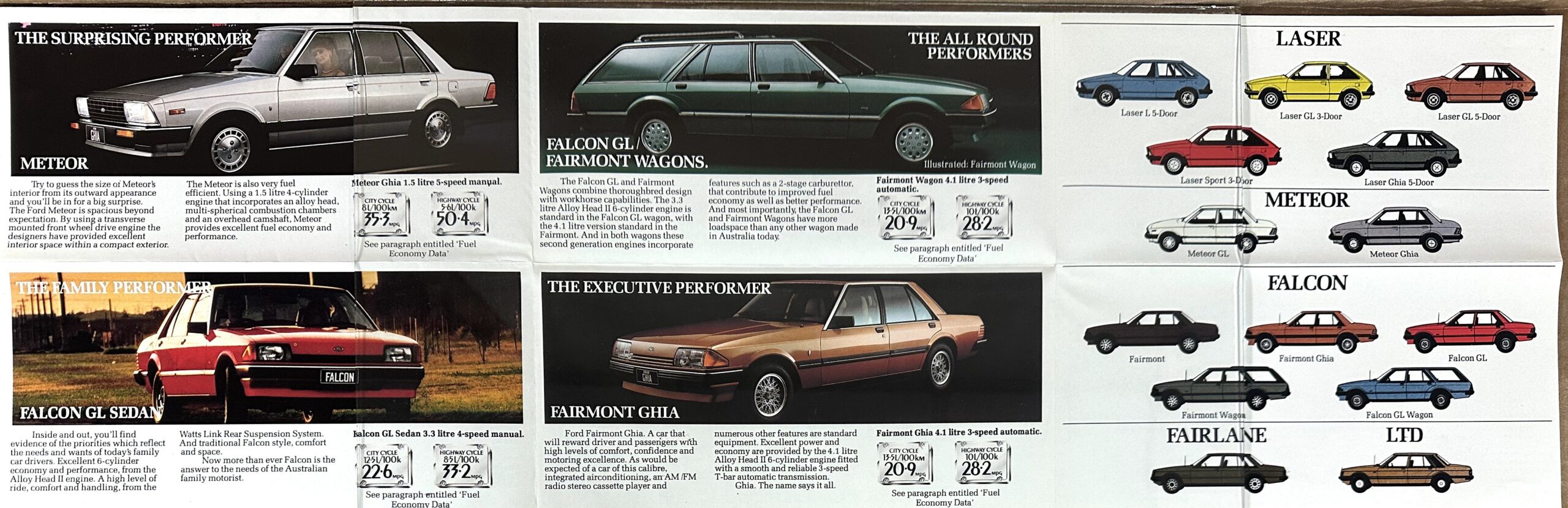 This is an original Ford literature piece. It features a highlight on Ford Cars with color photos.