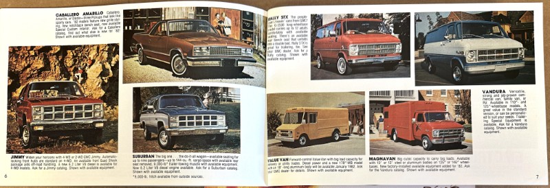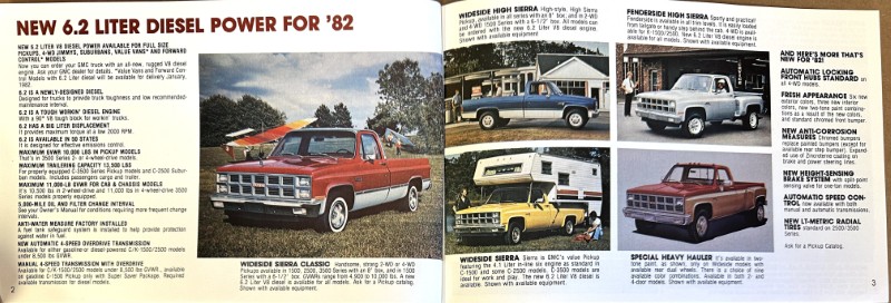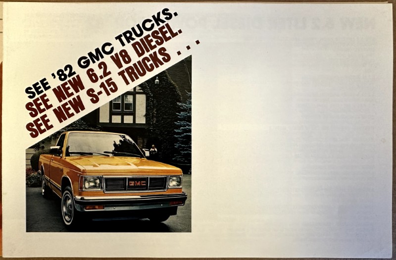 This is an original GMC literature piece. It includes promotional information on GMC V8 Diesel and S15 Trucks with colored photos.