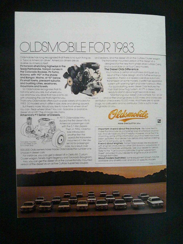 This is an original 1983 Oldsmobile full-line sales catalog featuring the complete lineup with specs and features.
