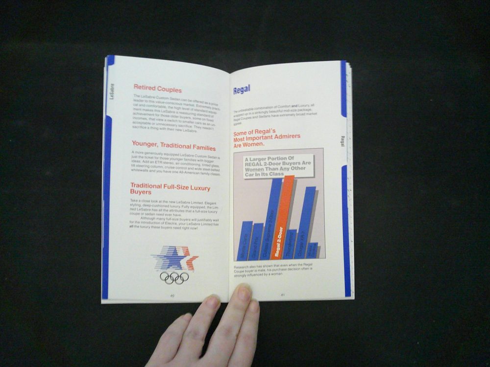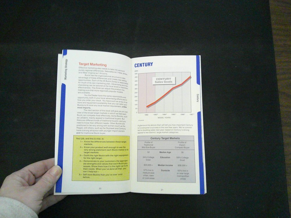 This is an original 1984 Buick Marketing Information Booklet used by dealerships. It provides in-depth data on marketing strategy and select vehicles from the 1984 lineup.
