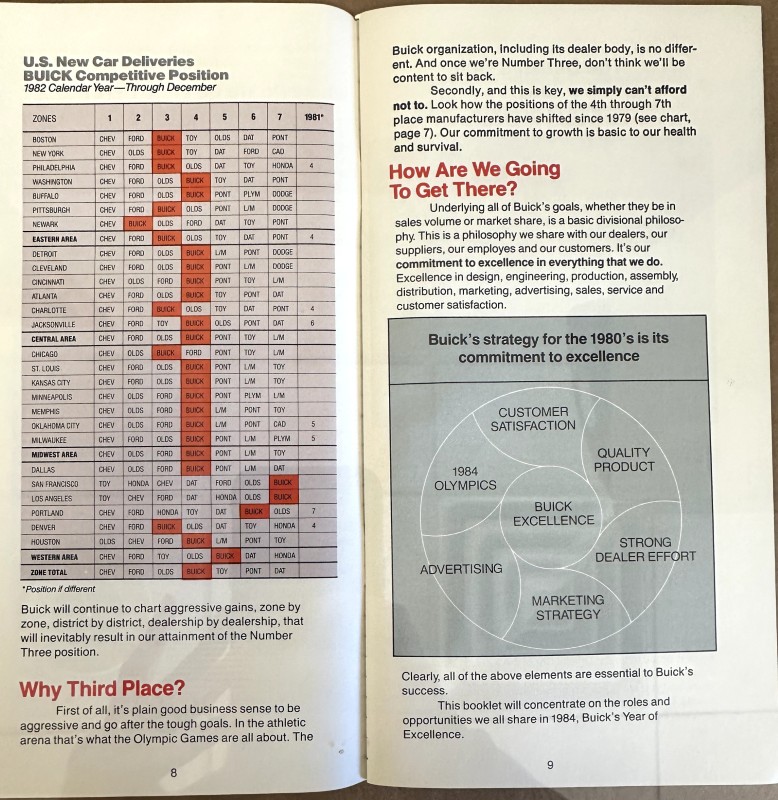 This is an original Buick literature piece. It includes promotional information on Buick Marketing Information with colored photos.