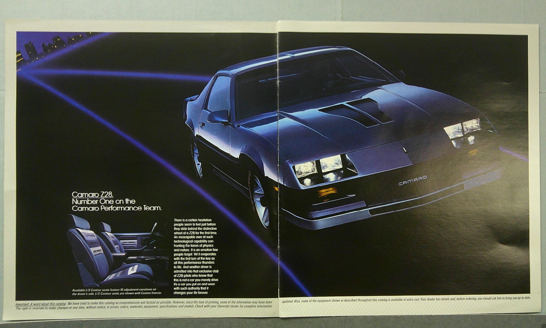 This is an original Chevrolet sales catalog. It features promotional highlights for the Chevrolet Camaro with full color pictures and specifications.