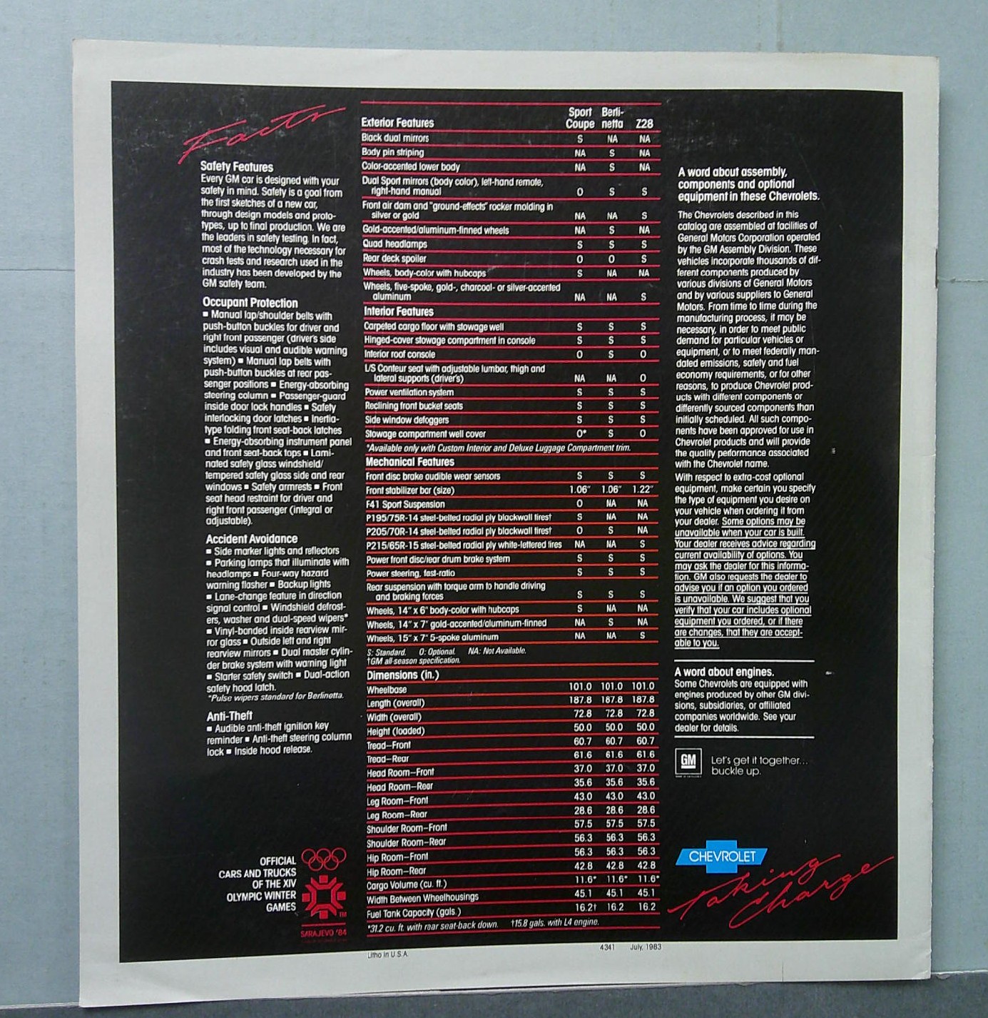 • Covers 1984 Chevrolet Camaro models including Z28, Berlinetta, and Sport Coupe