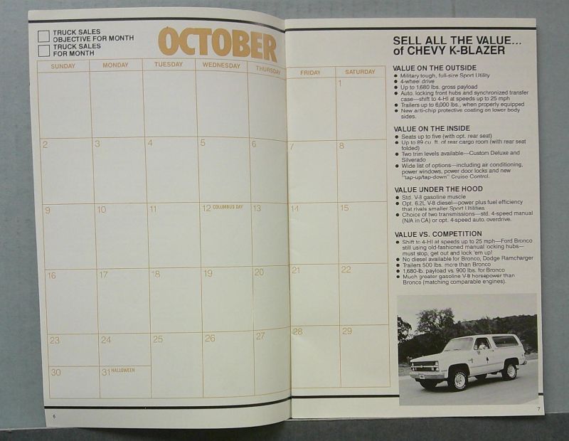 This is an original Chevrolet Calendar. It features promotional highlights for the Chevrolet truck lineup in calendar format.
