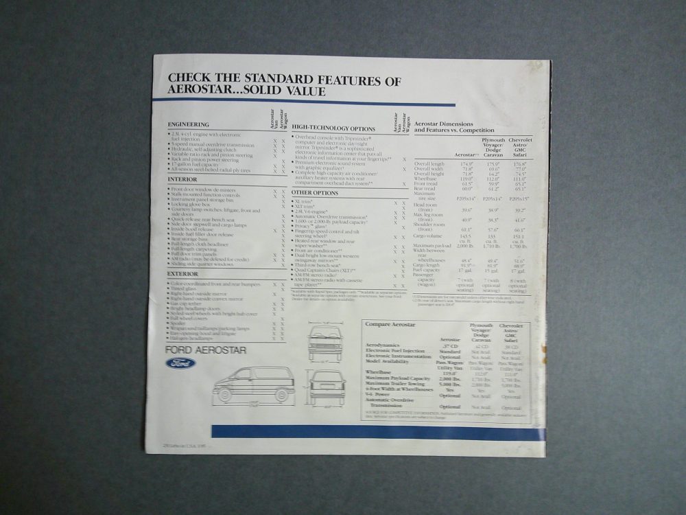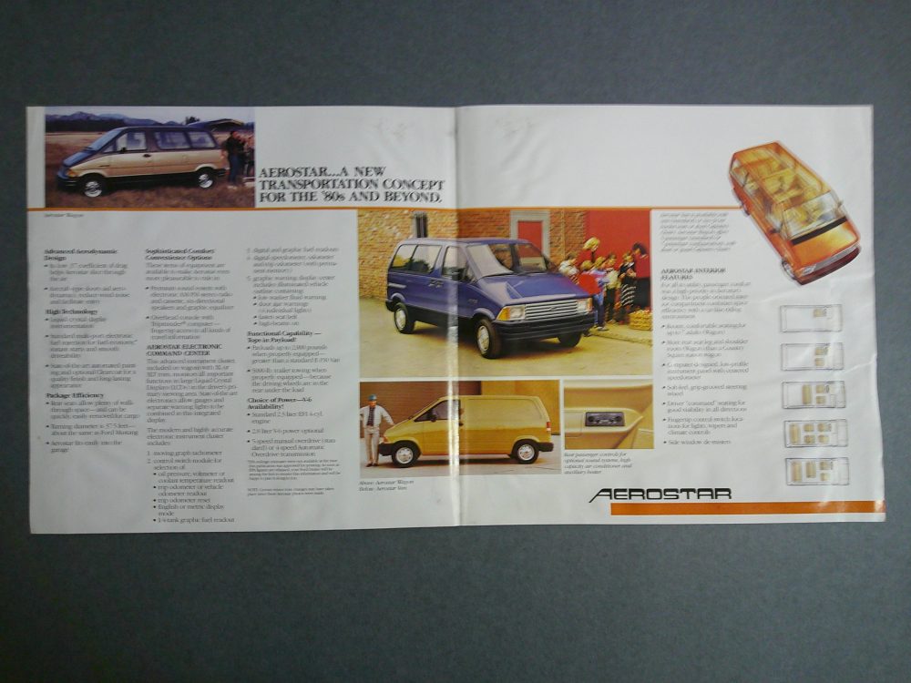 This is an original 1985 Ford Aerostar sales brochure. It includes detailed information on features and available options for the debut model year of the Aerostar minivan.