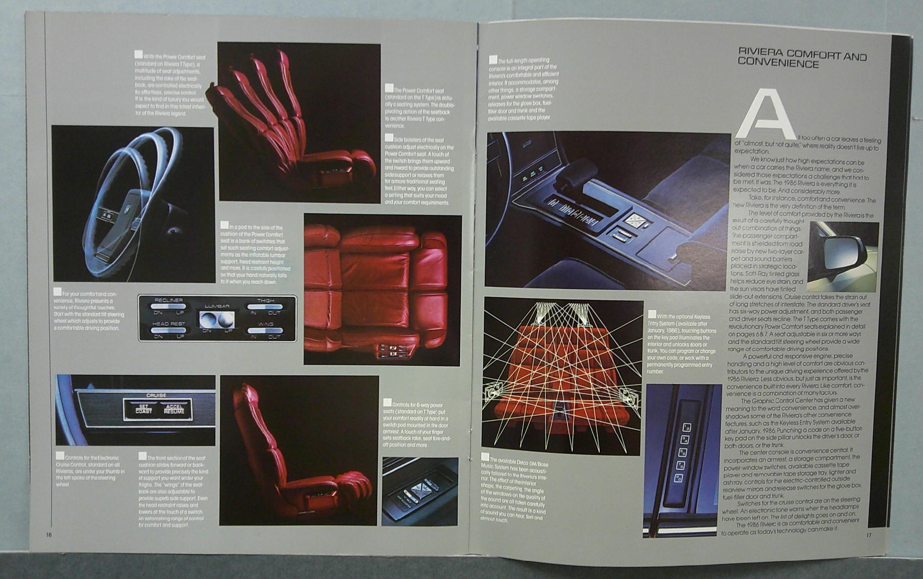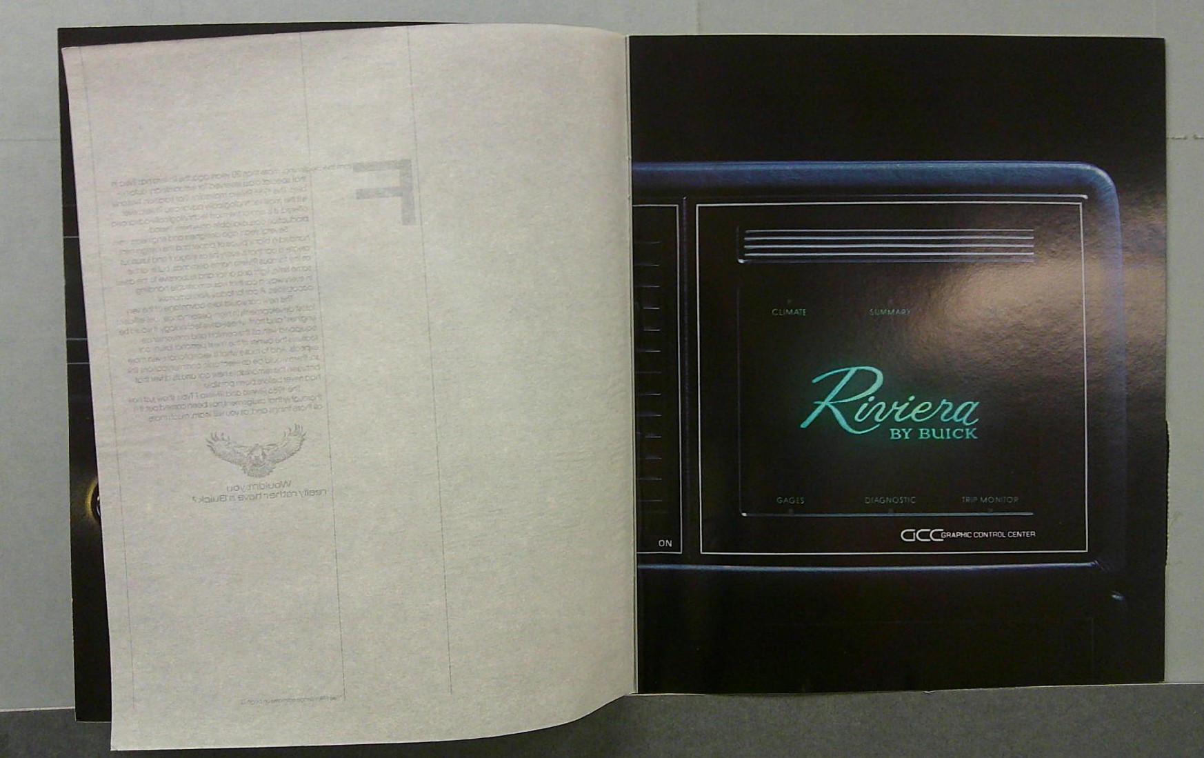 This is an original 1986 Buick sales Catalog. It highlights information on features and available options for Buick’s Riviera lineup.