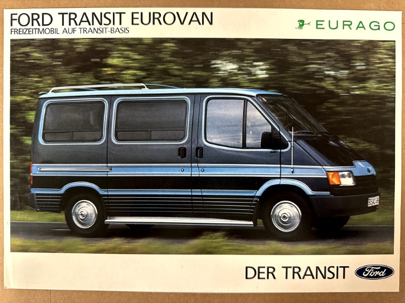 This is an original Ford literature piece. It features promotional highlights for the Ford Transit with colored photo.