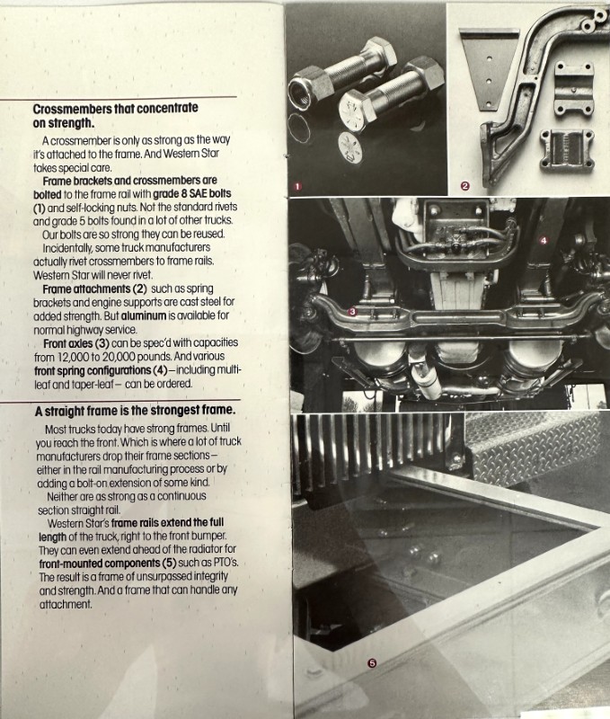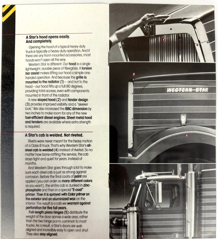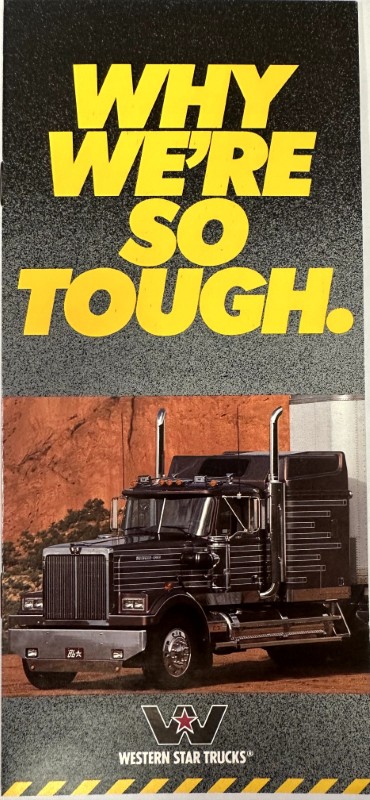 This is an original Western Star Trucks sales literature piece. It features a promotional highlight for the Western Star Trucks with gray photos.