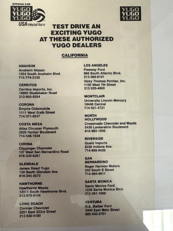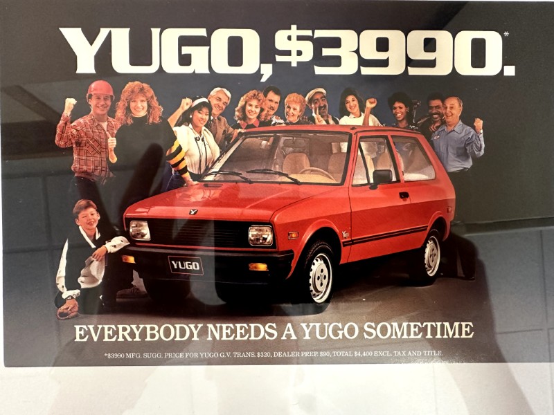 This is an original Yugo sales literature piece. It features a promotional highlight for the Yugo with color photos.