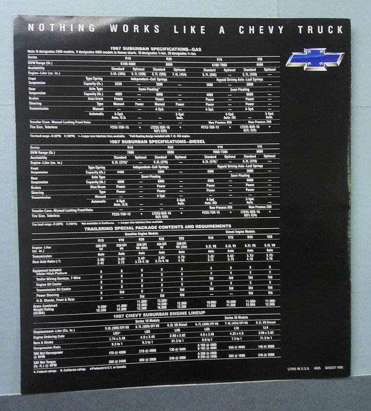 • Covers 1987 Chevrolet Suburban models including R10, R20, V10 and V20
