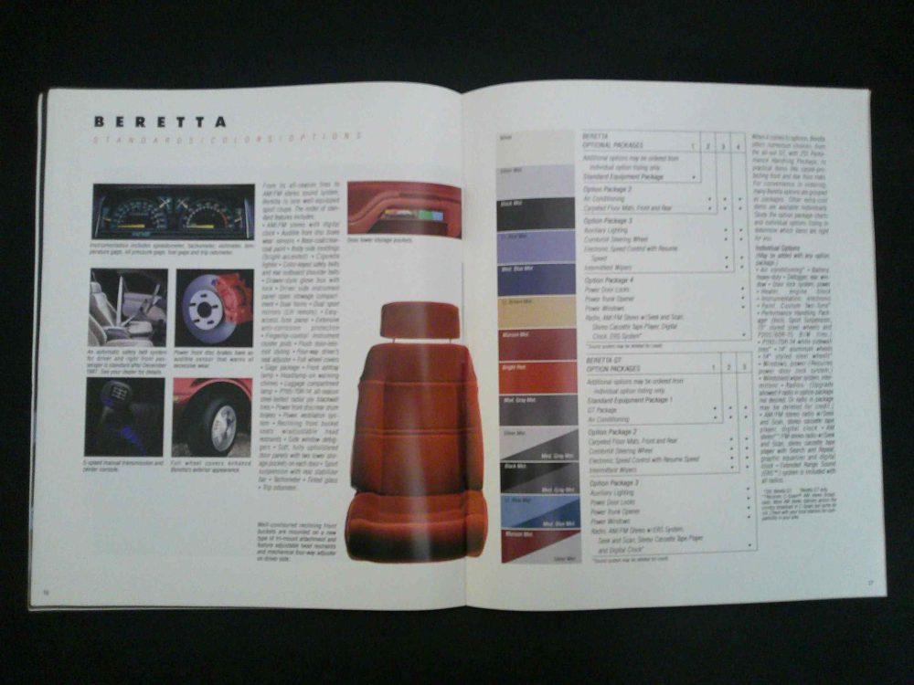 Covers Beretta models and available trim levels