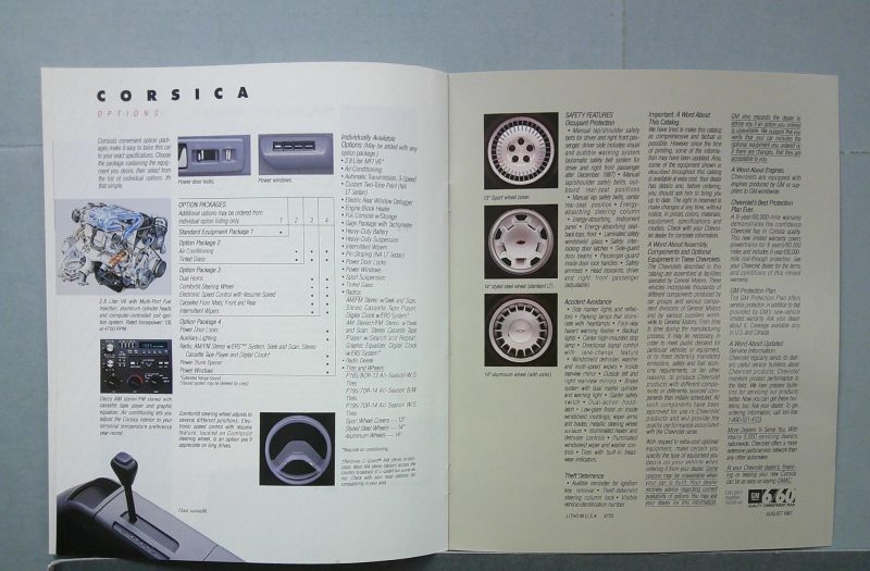 • Features 1988 Chevrolet Corsica models including CL and LT