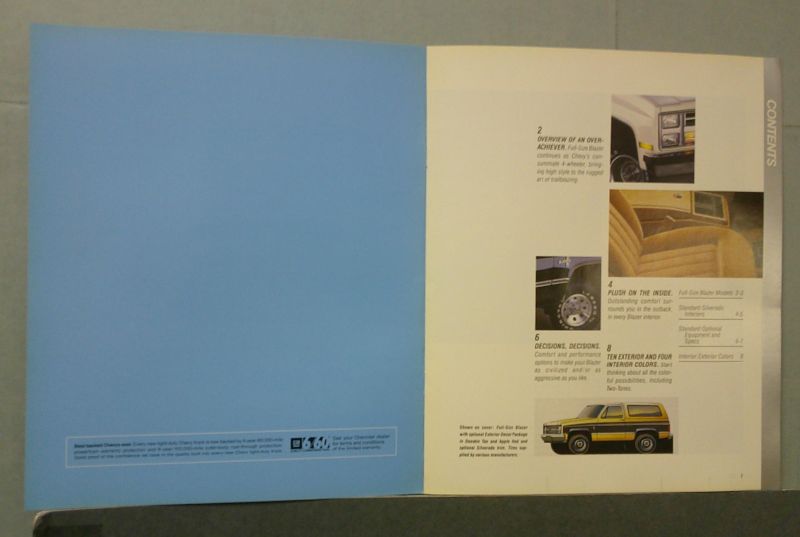 This is an original Chevrolet sales catalog. It features promotional highlights for the Chevrolet Blazer with full color pictures and specifications.