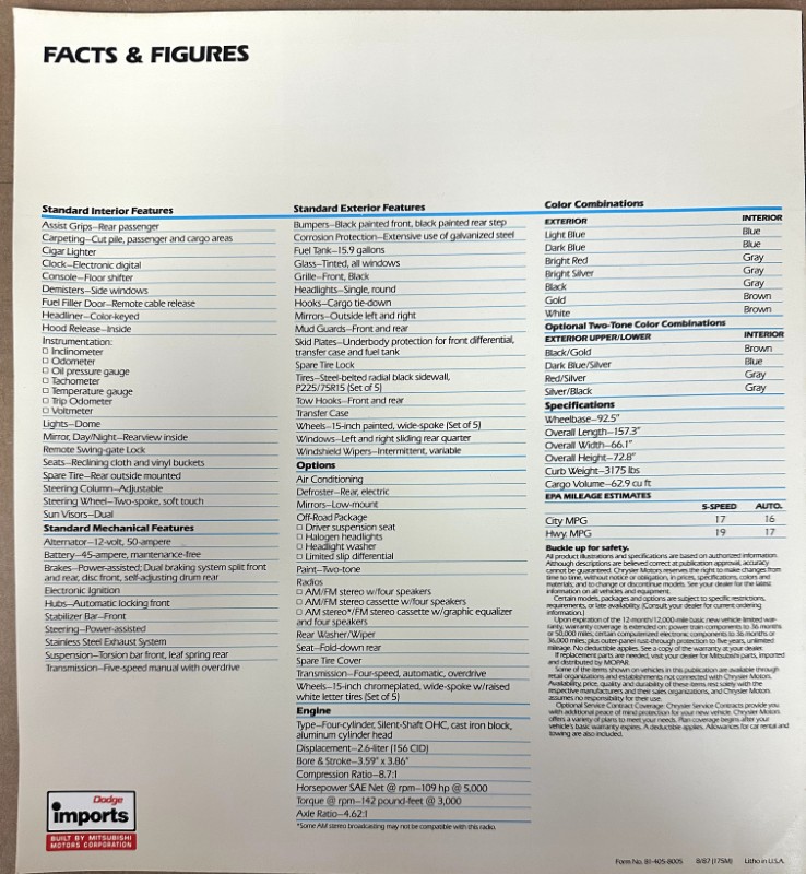1988 Dodge Raider, Sales Catalog
