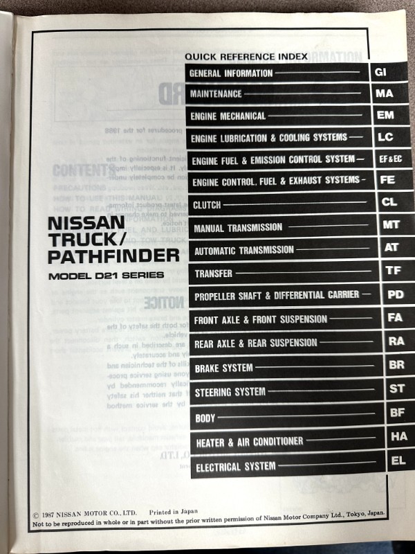 - Covers Nissan Truck/Pathfinder: Manual, Specifications, Options