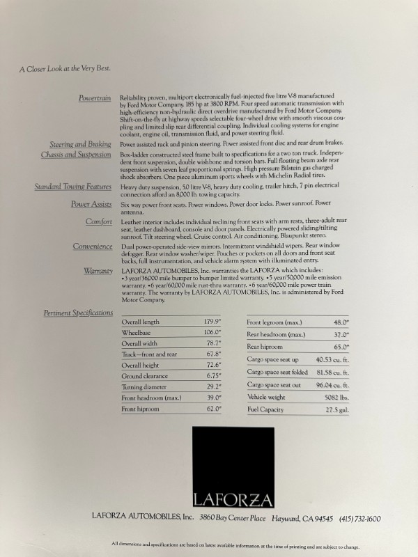 1991 Laforza, Sales Catalog