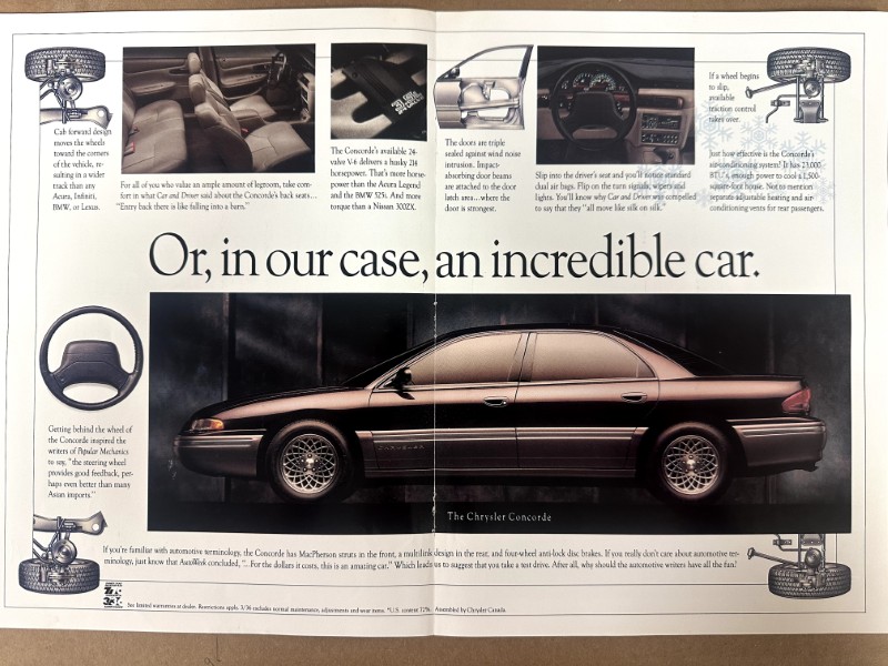 This is an original Chrysler literature piece. It features a highlight on Chrysler Concorde with color photos.