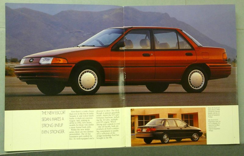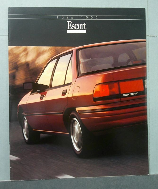 This is an original Ford sales catalog. It features promotional highlights for the Ford Escort with full color pictures and specifications.