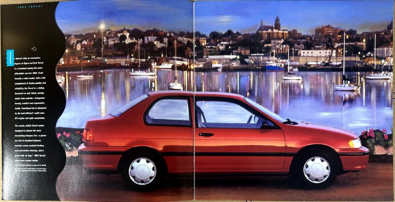 This is an original Toyota sales literature piece. It features a highlight on Tercel with colored photos.