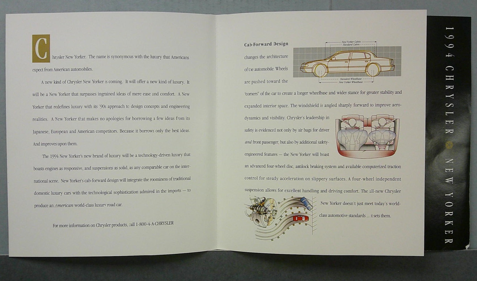 This is an original Chrysler sales folder. It features promotional highlights for the Chrysler New Yorker with full color pictures and specifications.