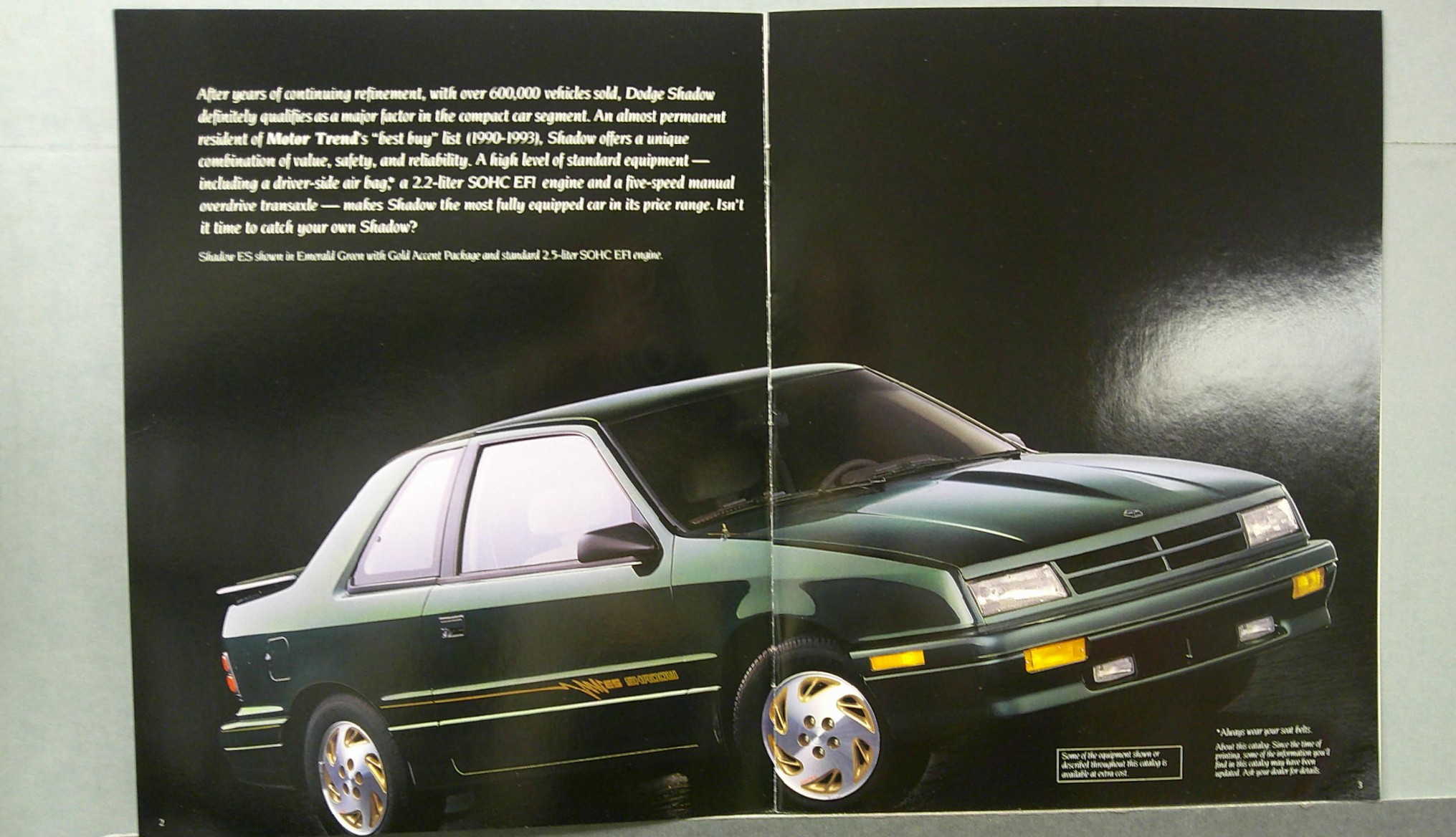 This is an original Dodge sales catalog. It features promotional highlights for the Dodge Shadow with full color pictures and specifications.