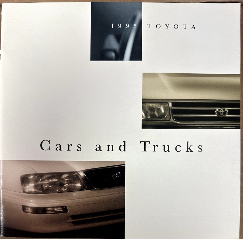 This is an original Toyota sales literature piece. It features a highlight on Toyota Cars and Trucks with colored photos.