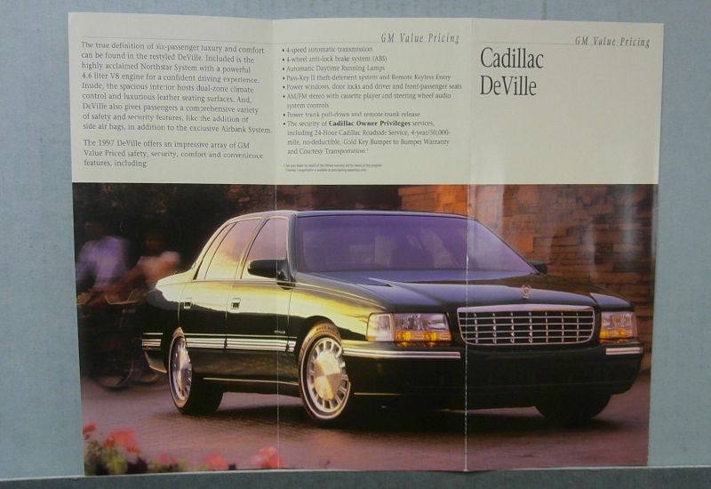 This is an original Cadillac sales folder. It features promotional highlights for the Cadillac DeVille with full color photographs and specifications.