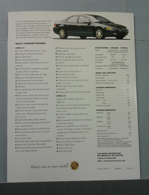 1997 Chrysler Cirrus Sales Folder
