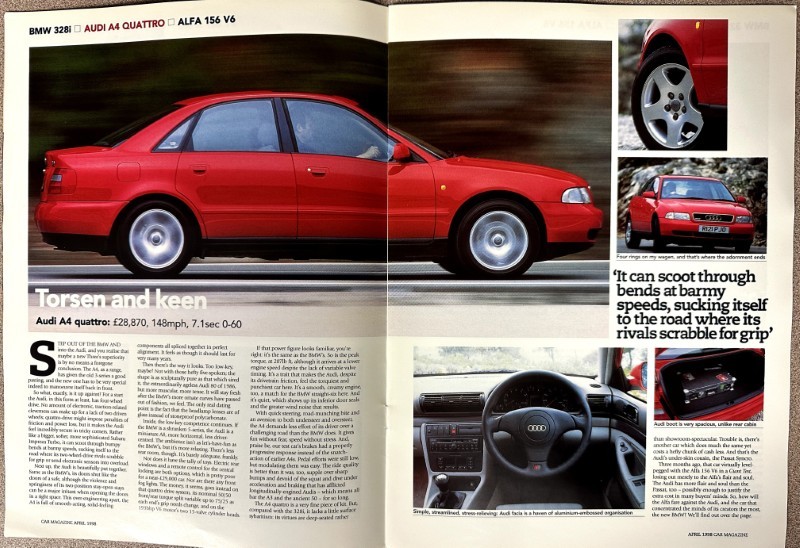 This is an original Car Magazine sales catalog. It features a promotional highlight for the Audi with colored pictures.