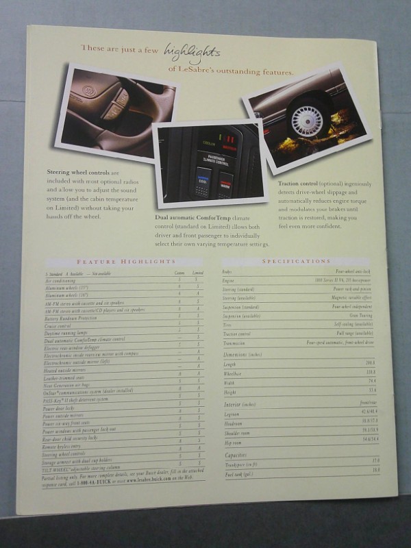 This is an original Buick sales catalog. It features promotional highlights for the Buick LeSabre with full color pictures.