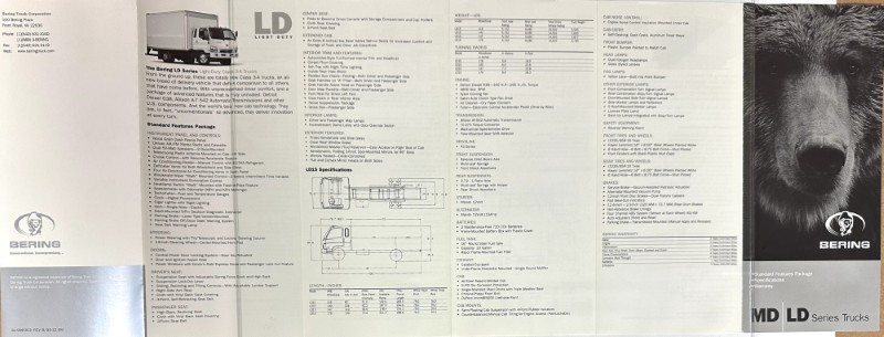 This is an original Bering sales literature piece. It features a promotional highlight for the Bering MD/LD Trucks with gray photos.