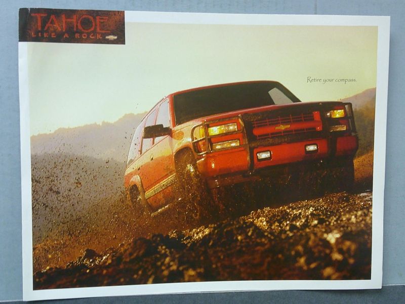 This is an original Chevrolet sales folder. It features promotional highlights for the Chevrolet Tahoe with full color pictures and specifications.