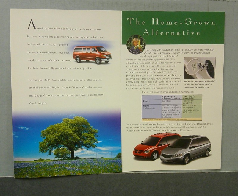 This is an original Chrysler sales folder. It features promotional highlights for E85 gasoline alternative.