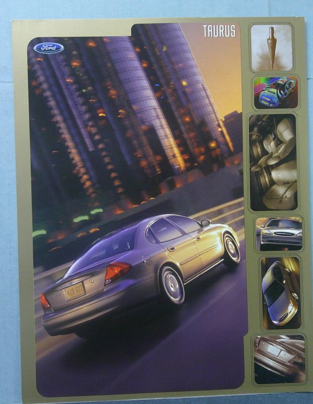 This is an original Ford sales sheet. It features promotional highlights for the Ford Taurus with full color pictures and specifications.