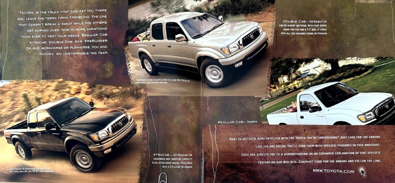 This is an original Toyota sales literature piece. It features a highlight on Toyota Tacoma with colored photos.