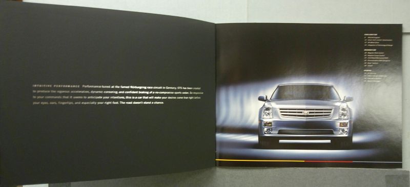 This is an original Cadillac sales catalog. It features promotional highlight for the Cadillac STS with full color pictures and specifications.