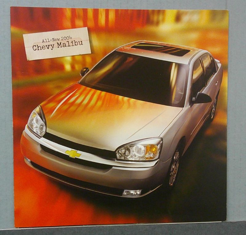 This is an original Chevrolet sales folder. It features promotional highlights for the Chevrolet Malibu with full color pictures and specifications.