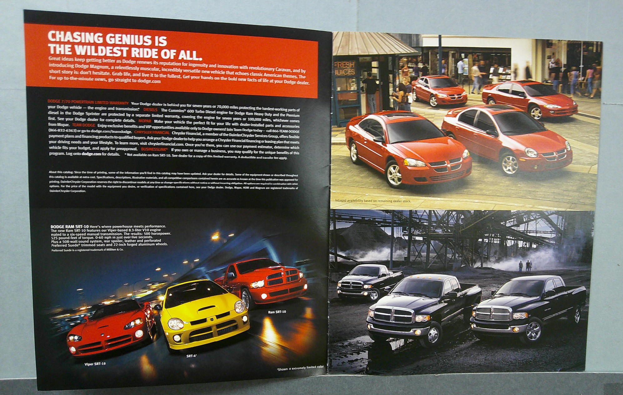 This is an original 2004 Dodge sales catalog. It features promotional highlights for the 2004 Dodge lineup.