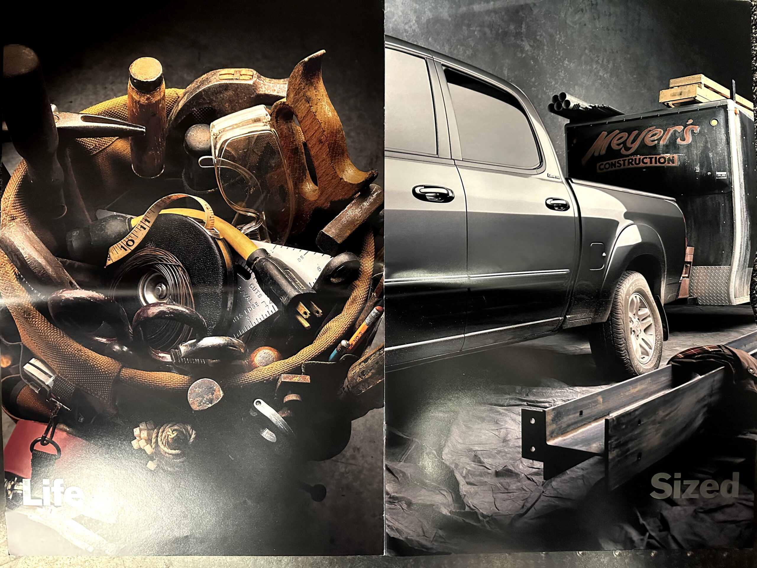 This is an original Toyota sales literature piece. It features a highlight on Toyota Tundra with colored photos.