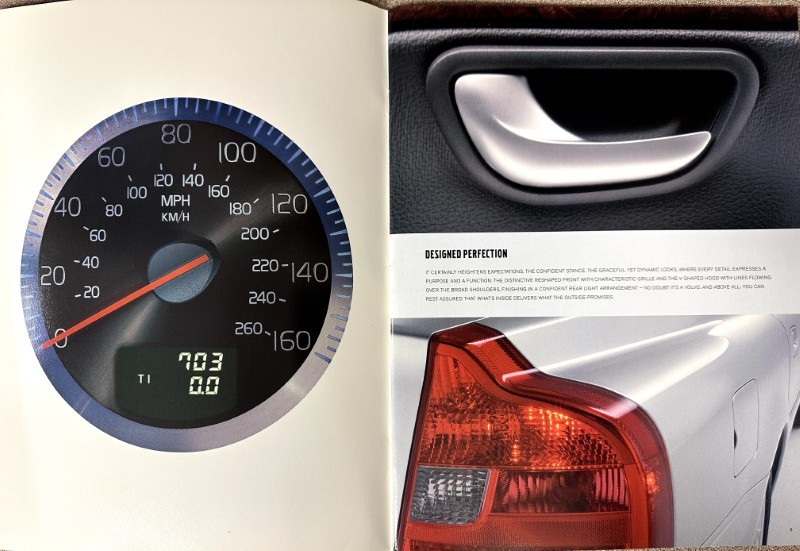 This is an original Volvo sales catalog. It features a promotional highlight for the Volvo S60 with colored pictures.