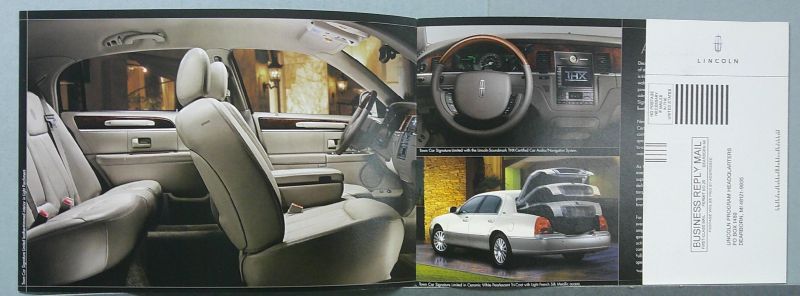 This is an original Lincoln sales folder. It features promotional highlight for the Lincoln Town Car with full color pictures and specifications.