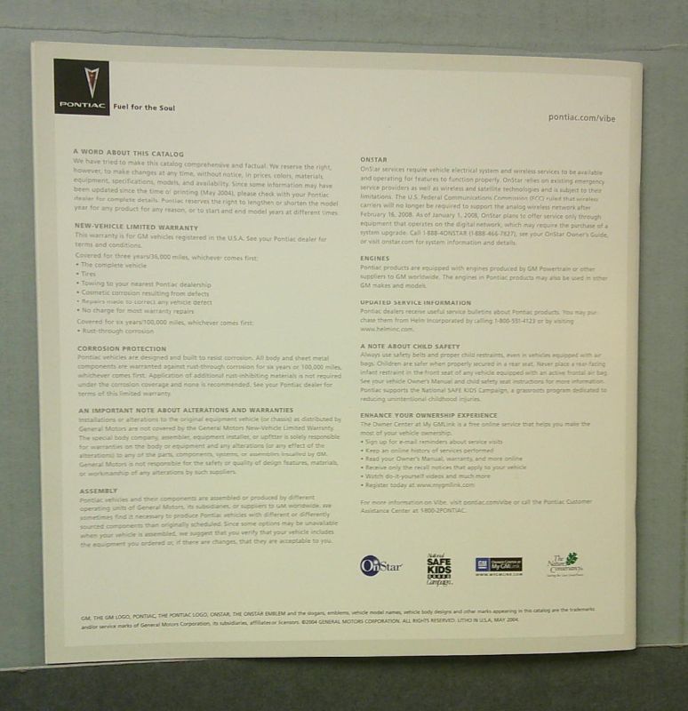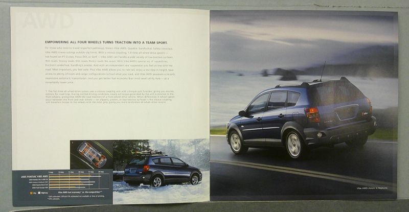 This is an original Pontiac sales catalog. It features promotional highlights for the Pontiac Vibe with full color pictures and specifications.