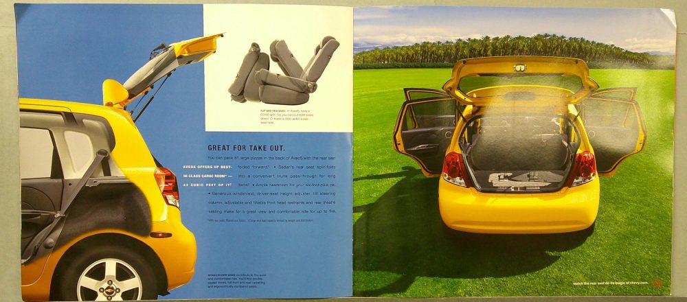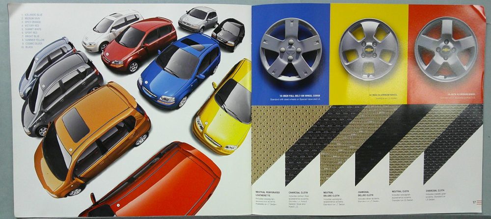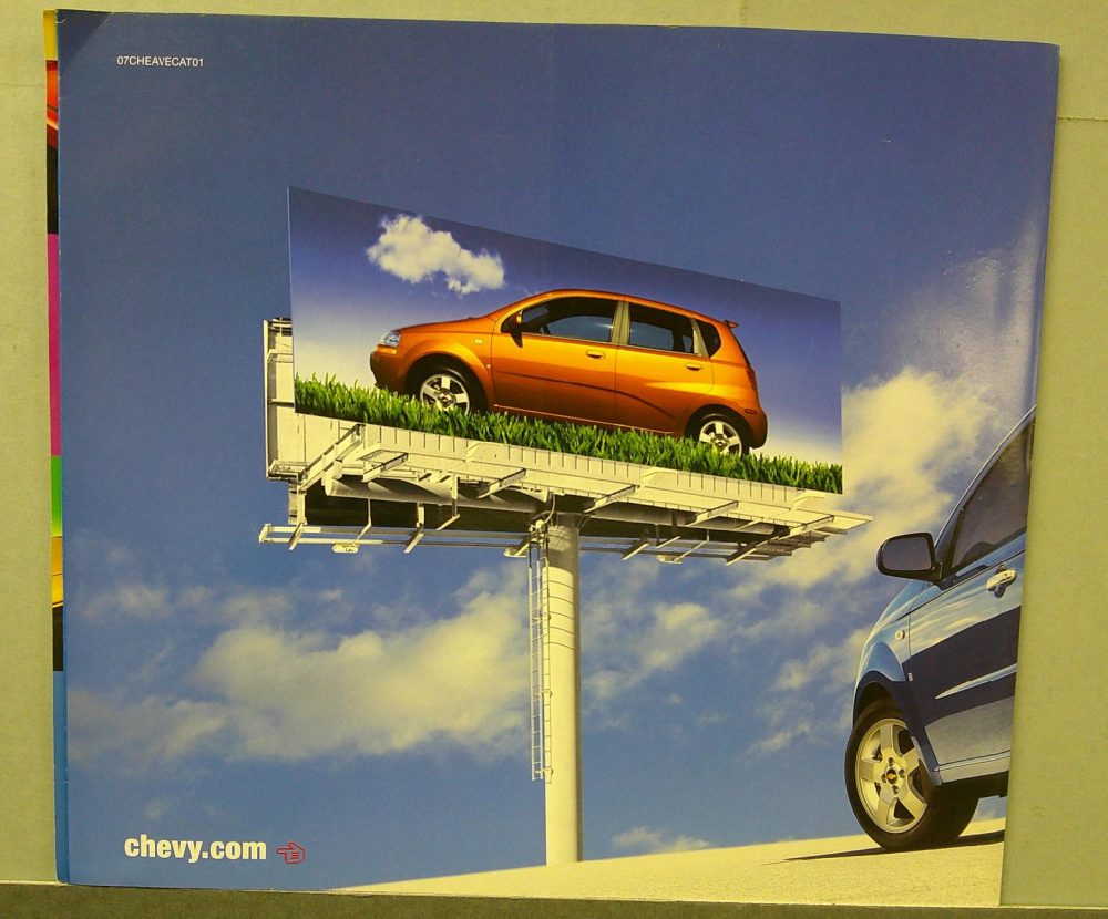 This is an original 2007 Chevrolet sales catalog. It highlights information on features and available options for Chevrolet’s 2007 Aveo lineup.