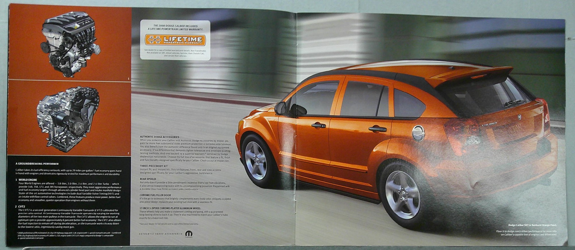 This is an original Dodge sales catalog. It features promotional highlights for the Dodge Caliber with full color pictures and specifications.