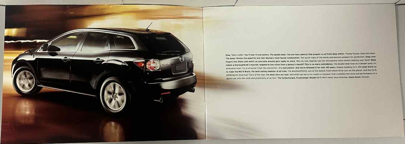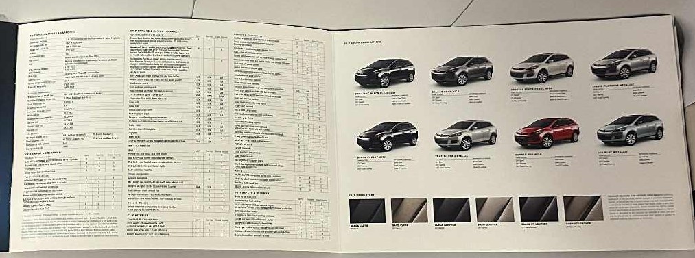 This is an original Mazda sales catalog. It features a promotional highlight for the CX-7 with full-color pictures and specifications.