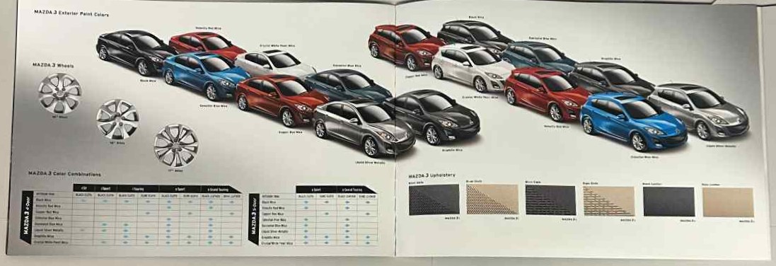 - Covers Mazda 3; specifications, options, interiors, trims