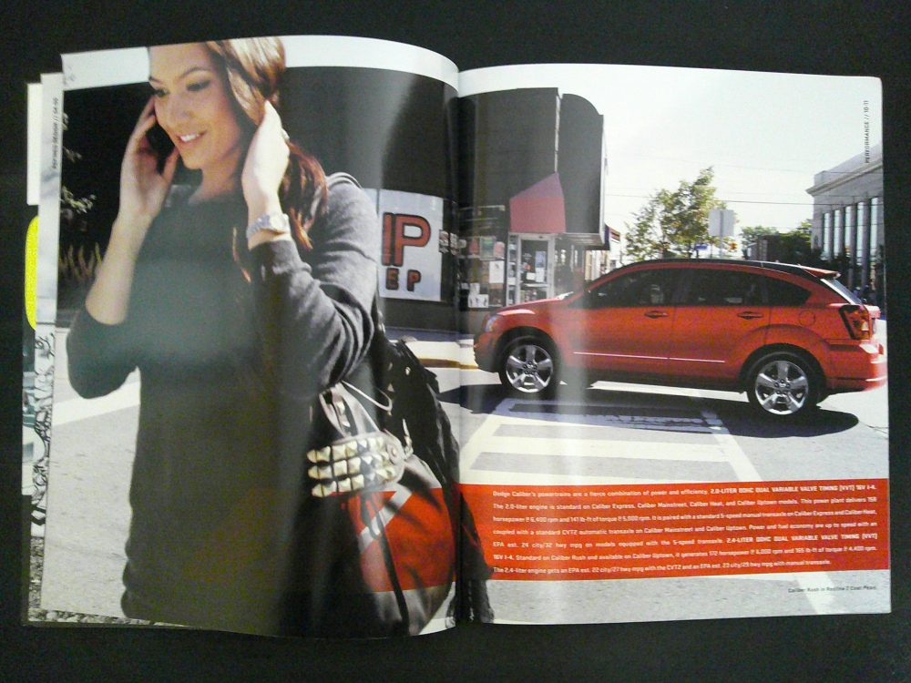 This is an original 2011 Dodge Caliber sales catalog featuring detailed information on Dodge’s versatile compact hatchback. It includes trim options and specifications.