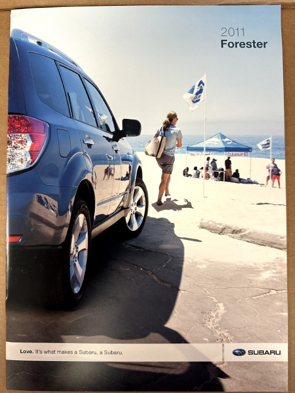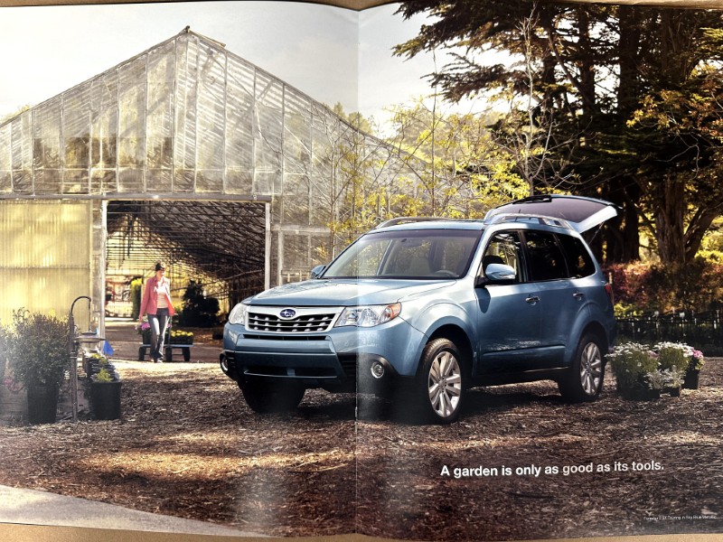 This is an original Subaru literature piece. It features a promotional highlight on the Subaru Forester, full color photos.