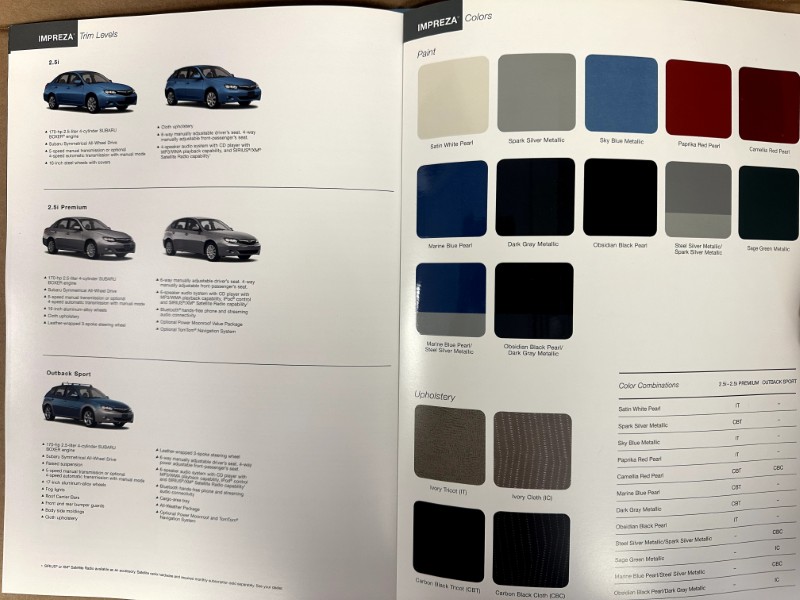 - Covers Subaru Impreza; options, specifications, colors, trims